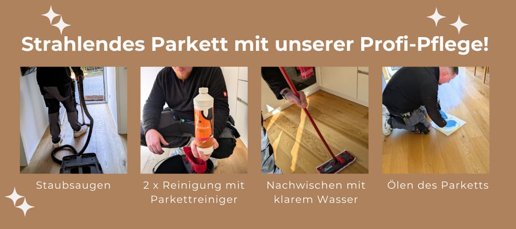 2. Professionelles Ölen: Hochwertiges Pflegeöl schützt Ihr Parkett und bringt seine natürliche Maserung zum Strahlen.