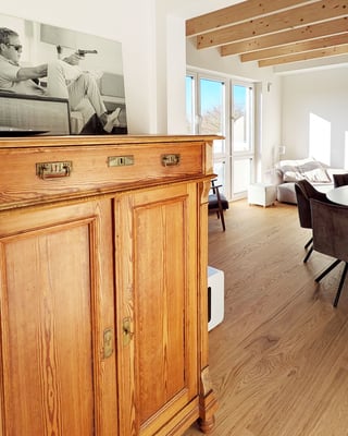 Eigentümer: "Ja, unbedingt! Man muss sich bewusst sein, dass im Laufe der Zeit kleine Schrammen und Macken dazukommen werden. Aber das ist für mich kein Problem, sondern Teil des Charmes. Es erzählt die Geschichte des Hauses und macht den Boden noch lebendiger. Man sollte sich darauf einlassen und es als natürlichen Alterungsprozess sehen. Hauptsache, man pflegt ihn gut, dann hat man lange Freude daran."